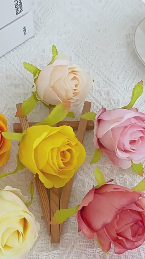 Bulk 10Pcs Rose Bud Flower Heads Silk Flowers for DIY Wedding Bouquets Centerpieces Baby Shower Party Home Decorations Wholesale
