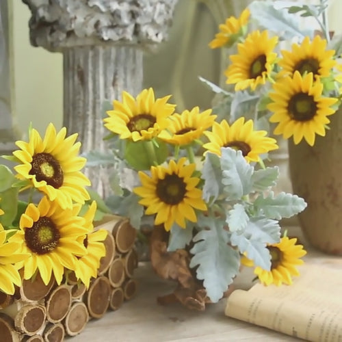 Venta al por mayor de flores artificiales de tallo de girasol de tacto Real a granel de 12 "