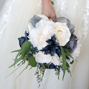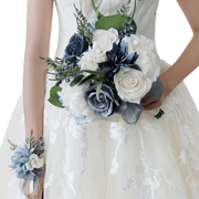 Ramos de novia franceses artificiales a granel Ramos de boda azul marino al por mayor