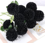 Lot de 12 boules de fleurs de chrysanthèmes noirs d'Halloween de 11 pouces en vrac