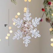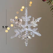 Ornements de flocons de neige artificiels en vrac Ornements suspendus pour arbres de Noël à paillettes transparentes en gros