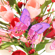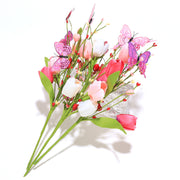 Bulk 3pcs 17" Valentine's Day Flower Bouquet Tulip Rose Branches Stems with Butterfly Wholesale