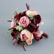 Bouquets de mariée ronds français bordeaux en vrac de 9 pouces Bouquets de mariage roses en gros