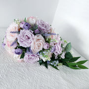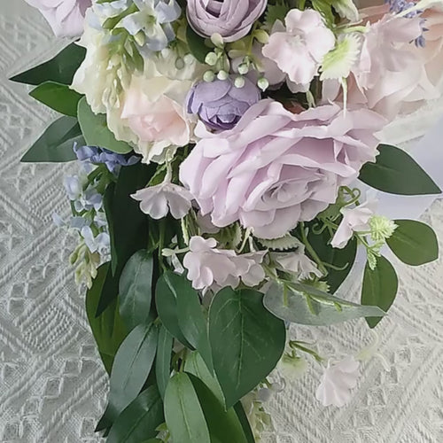 Bouquet de mariage en cascade de pivoines roses et violettes lilas de 9 po en gros