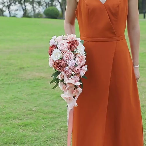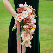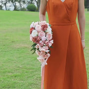 Bouquets de mariage en cascade d'orchidées rétro corail champagne coucher de soleil en vrac de 9 pouces en gros