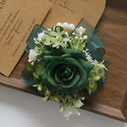 Bouquet de poignet rétro en rose verte avec verdure en gros