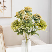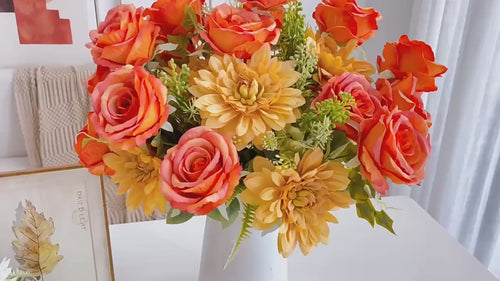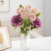 Bulk 20" Large Bush Artificial Rose Bouquets Mixed with Realistic Dahlia Silk Flowers