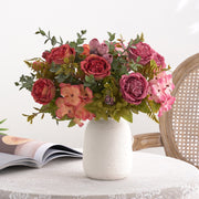 Bulk 12.5" Mixed Flowers Arrangement Peony Rose Bud Hydrangea Bush Bouquet Wholesale