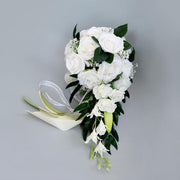 Bouquet de mariée en cascade de roses en vrac, 5 couleurs, 9 pouces, vente en gros