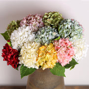 Fleurs d'hortensia en soie en vrac avec tiges et feuilles pour la décoration de table de fête de mariage à domicile en gros