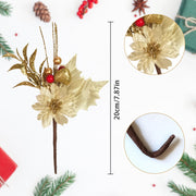 Lot de 10 tiges de fleurs dorées de Noël en vrac pour ornements