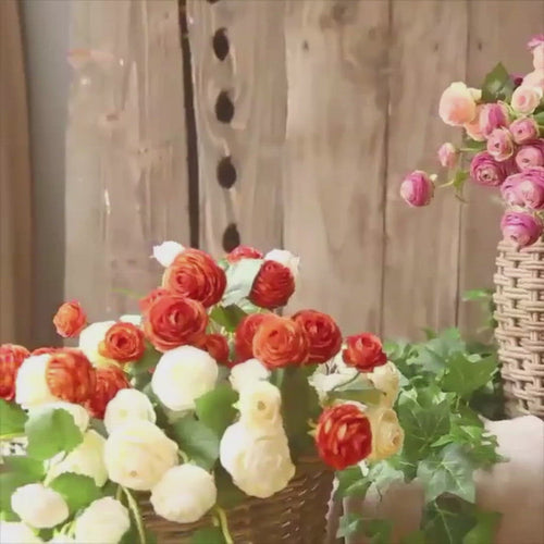 Branches de tiges de renoncules en vrac de 16 pouces Fleurs artificielles en soie en gros