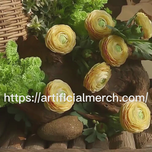 Fleurs de renoncule en vrac de 19 pouces avec tige au toucher réel Fleurs artificielles en soie de bouton d'or persan en gros