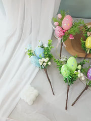 Bulk 6pcs Faux Easter Flowers Stems with Eggs Ornaments Wholesale