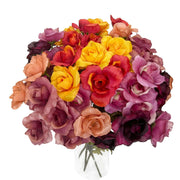 Roses in warm fall tones—think orange, yellow, deep rust, purple and soft amber—blend seamlessly with the season’s palette. Their timeless beauty adds a touch of elegance to any fall setup, whether paired with dried cornstalks, pinecones, or woven baskets.