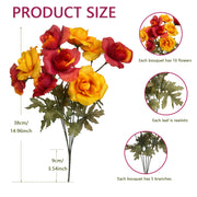 Bulk 14.9" Artificial Rose Bush Bouquet- Fall Decor, Faux Flower Arrangement for Autumn Home Decoration Wholesale