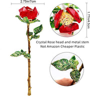 - La rose en cristal éternelle se compose de cristal fabriqué à la main et d'une élégante longue tige en métal émaillé de forme charmante avec de vraies feuilles, des objets artisanaux en cristal faits à la main et des collections d'art vraiment exquis