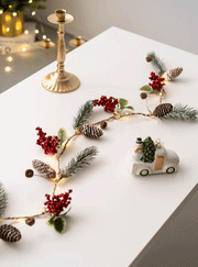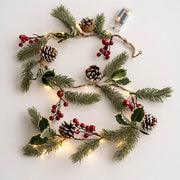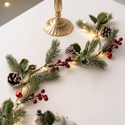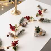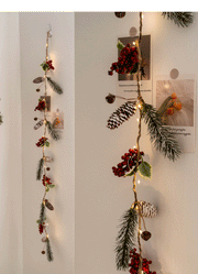 Guirlande de vignes suspendues en pin artificiel lumineux en vrac avec pommes de pin aux baies rouges pour la décoration des fêtes de Noël en gros