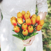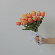 - Fabriqué à partir de tulipes au toucher réaliste, 16 tiges, enveloppées de rubans en mousseline