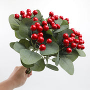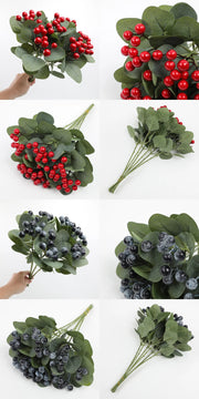 Lot de 6 tiges artificielles en vrac avec baies rouges et myrtilles de 17 pouces, branches de houx de Noël pour décoration de maison de vacances en gros