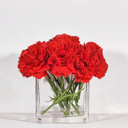 • Package of 1 x Carnation bouquet in glass vase with faux water