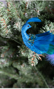 Ornements de paons bleus artificiels à longue queue en vrac Ornements suspendus de Noël en gros