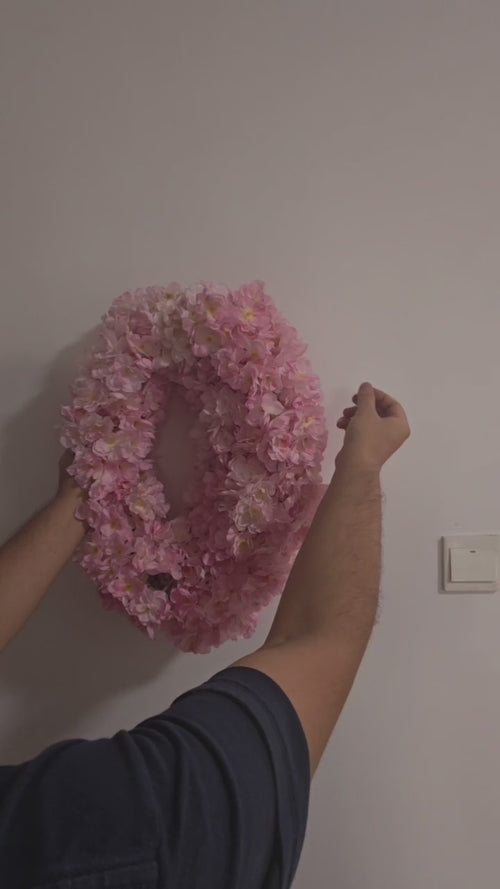 24 Inch Spring Cherry Blossom Wreath - Foldable Artificial Flower Wreath for Front Door