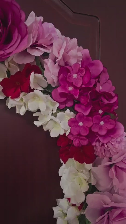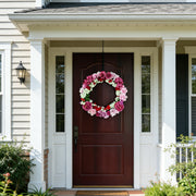 24 Inch Spring Wreath Foldable Artificial Roses Impatiens Chrysanthemums Mixed Flower Wreath