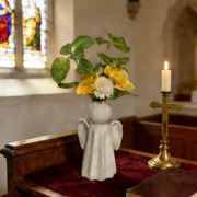 High-quality ceramic vase with detailed angel wing texture, designed to complement both traditional and contemporary church interiors.