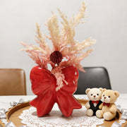 Cheerful pink hues in a charming red ceramic butterfly vase - creating a warm, romantic atmosphere for Valentine's Day
