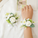 White Rose Corsage & Wrist Corsage Set for Wedding, Bridesmaid, Prom & Party Decorations